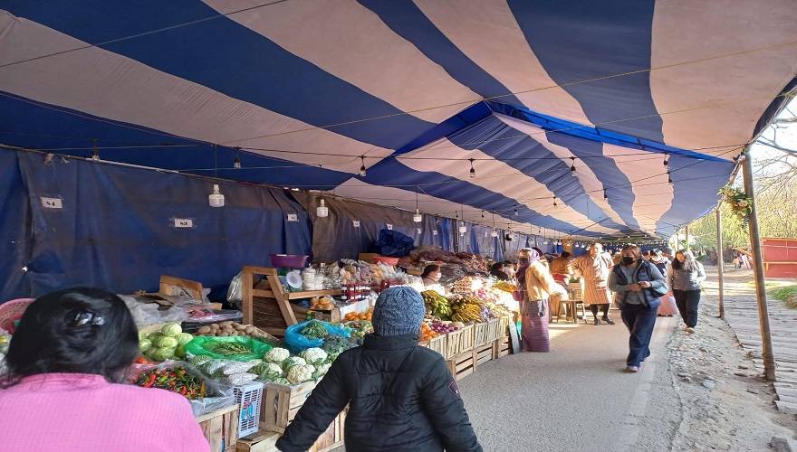 Located below the main town, near the Wang Chhu River, Thimphu’s weekend market is by far the largest domestic market for the farmers in Bhutan. The Centenary Farmers’ Market (CFM) was established in 2008 with the mandate to provide a platform for Bhutanese farmers to sell their agricultural produce and its products in a vibrant marketplace. The Royal Government of Bhutan established the existing infrastructure as part of National Celebrations of three significant milestones in the country’s history: 100 years of Monarchy, the Coronation of His Majesty the Fifth King, and the First Democratic Elections.